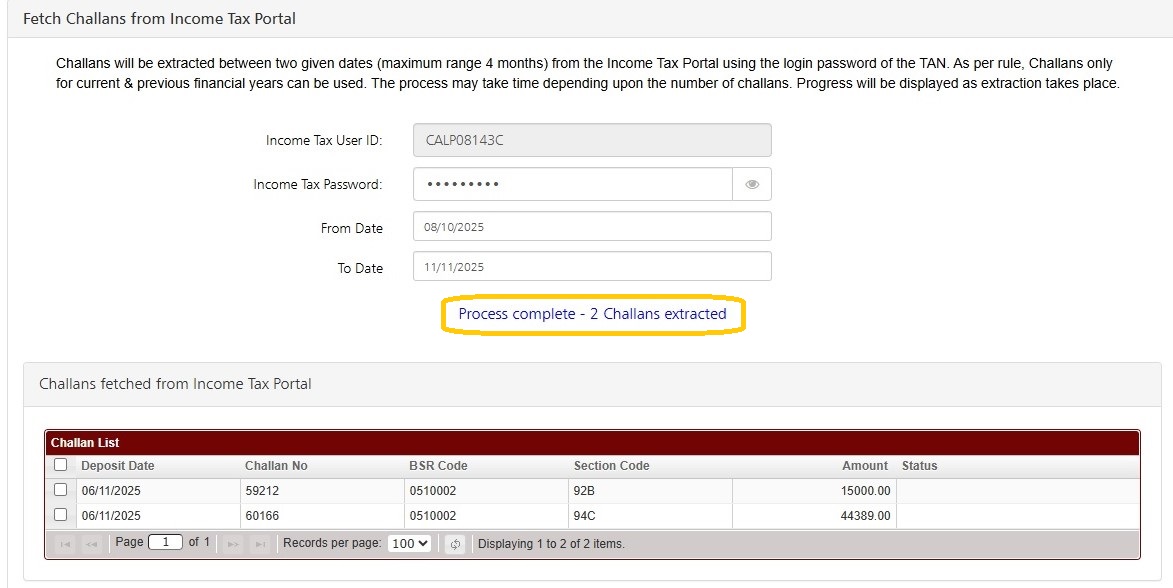 - Fetch Challan from Income Tax Portal